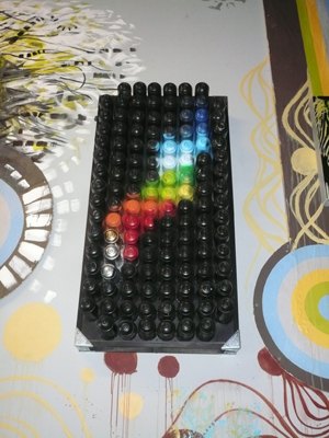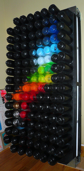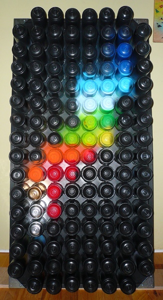 Medium: 124 old spray cans, wood, clay and spraypaint