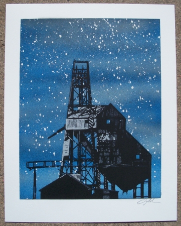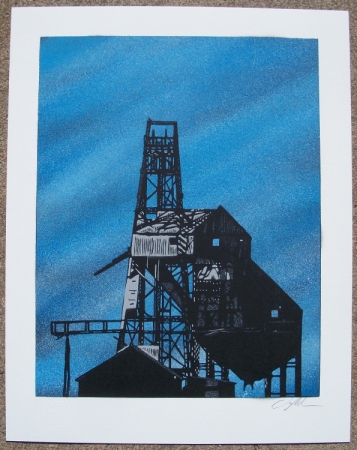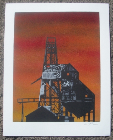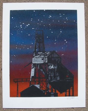 Note: 3 hand cut stencils and spraypaint. Sky colors in the prints will be custom, you choose the colors. Prints come signed, numbered, embossed and with a hand made Certificate of Authenticity.