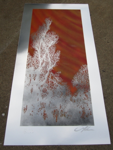 Note: 2 hand cut stencils and spraypaint. The colors of the prints will be custom, you choose them. I provided a few samples of different colors to the left. But you are welcome to be creative and make up your own color scheme. Prints come signed, numbered, embossed and with a hand made certificate of authenticity (COA).