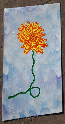 Note: hand cut stencils and spraypaint. Each of the prints in the edition have unique backgrounds and slight variations in the flower.