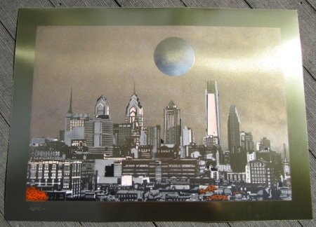 Note: hand cut stencils and spraypaint. I am offering these prints with custom sky colors.