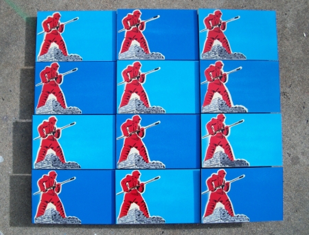 Note: 5 hand cut stencils and spraypaint. Created for upcoming the Intifada Art Show on December 11 at Core Gallery in Denver, CO.