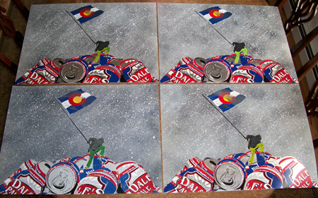 Note: 12 hand cut stencils and spraypaint. Prints come signed, numbered, embossed and with a hand made Certificate of Authenticity