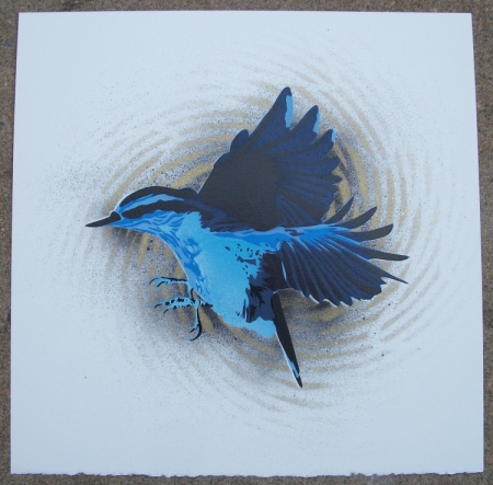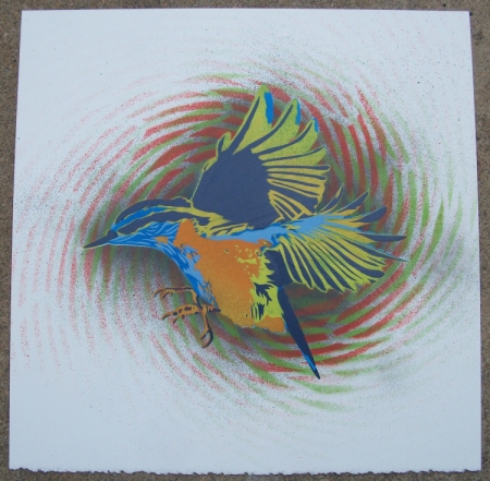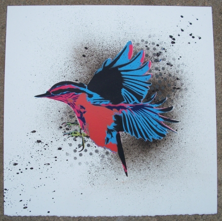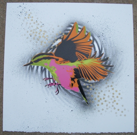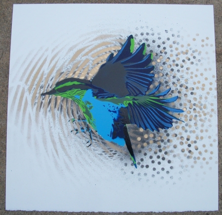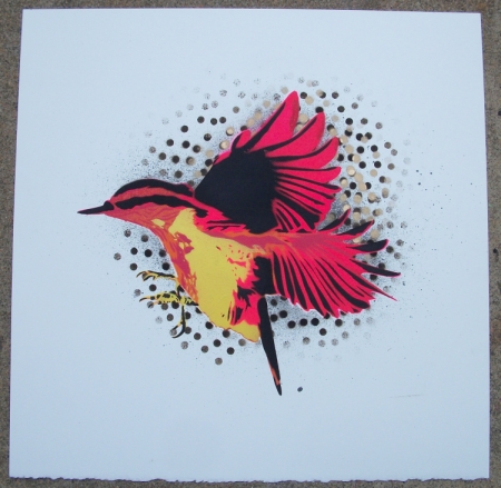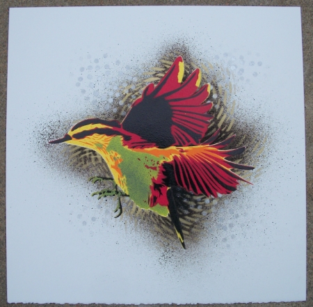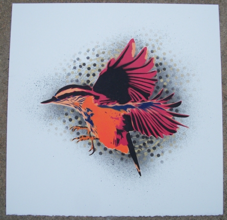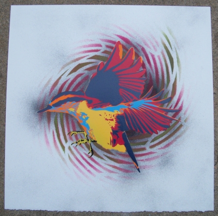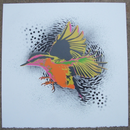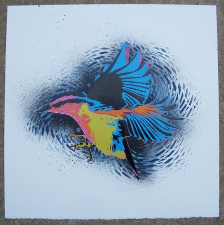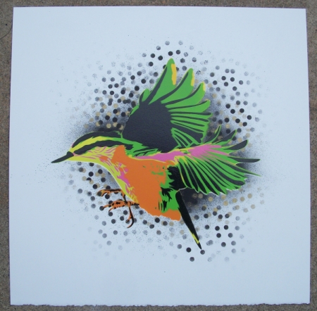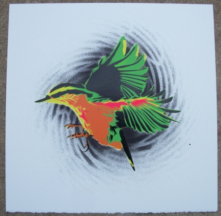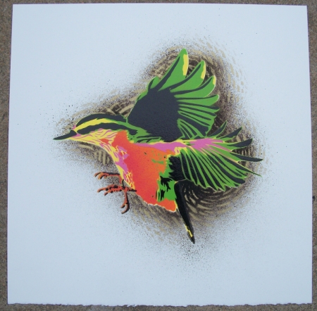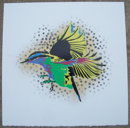 Note: 5 hand cut stencils and spraypaint. Prints #5,10,15 & 20 will be custom (you choose the colors). Prints come signed, numbered, embossed and with a hand made Certificate of Authenticity.