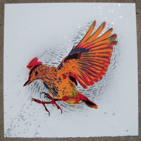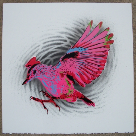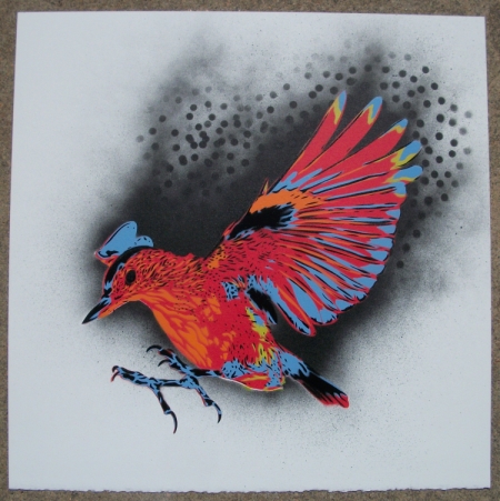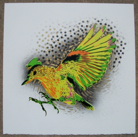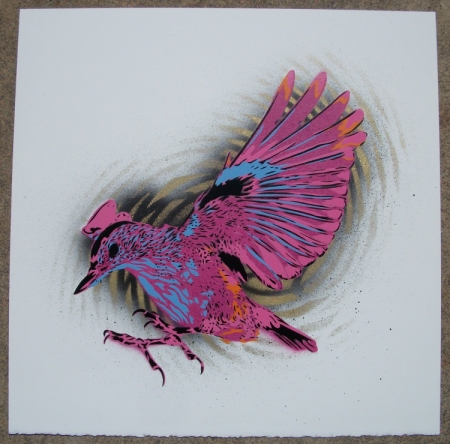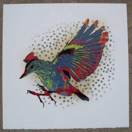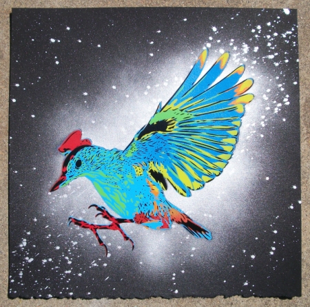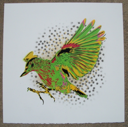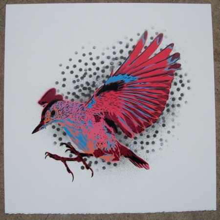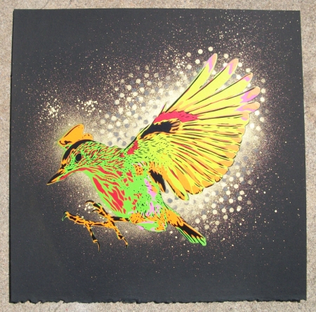 Note: 5 hand cut stencils and spraypaint. Prints #5,10,15 & 20 will be custom (you choose the colors). Prints #4 and #14 are on black paper. Prints come signed, numbered, embossed and with a hand made Certificate of Authenticity.