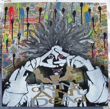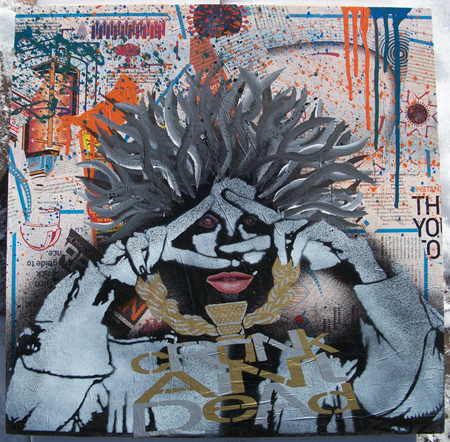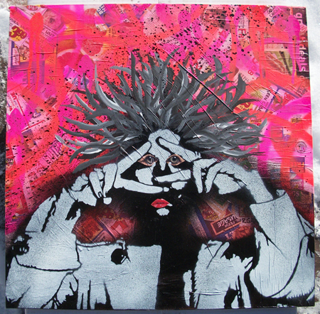 Medium: Stencil/Spraypaint/Collage/Gel Medium/Acrylic