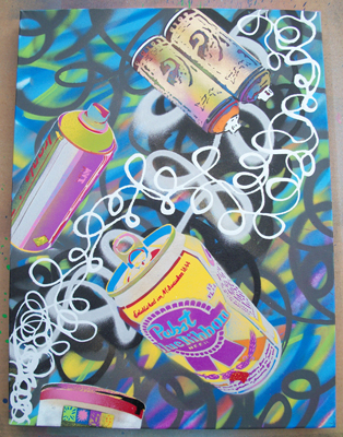 Medium: Stencil/Spraypaint/Silver City Ink on Canvas