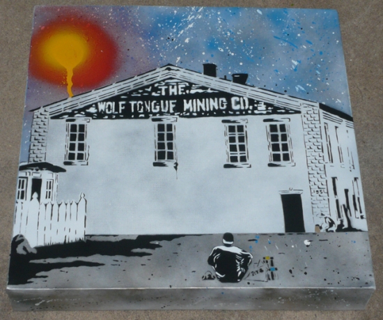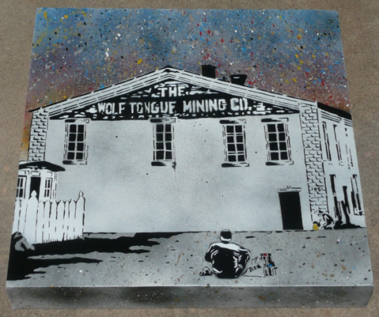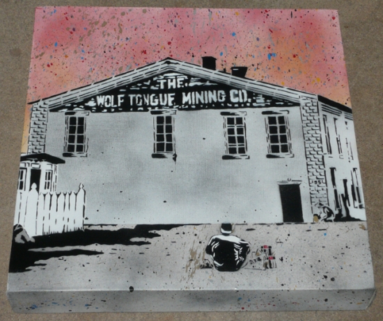 Medium: This one of a kind piece was sprayed on an old rusted piece of metal I found at an abandoned mine between Boulder and Nederland, Colorado. The metal is mounted on 1" agathis wood that was stained and then splatter stained. I also banged up the wood a little to give it a rustic look.