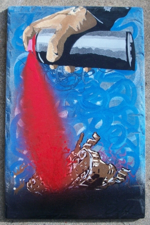 Medium: Stencil and Spraypaint on wood.