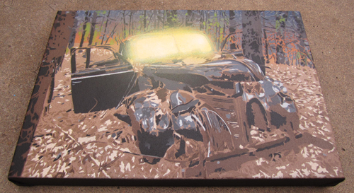 Note: Created using 10 hand cut stencils and Ironlak spraypaint. The canvas will be on display at Gallery 1988 in Los Angeles, CA from December 2 - December 30, 2011. More information on the art show is here.