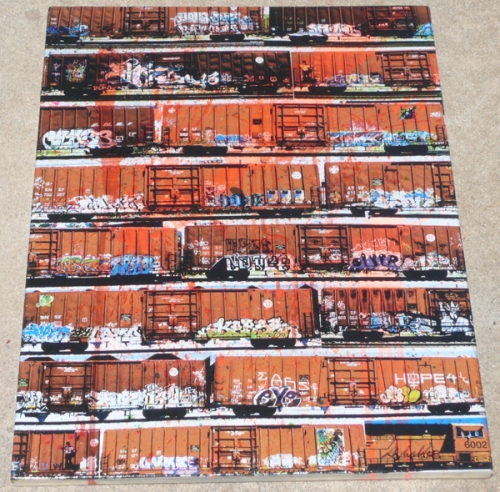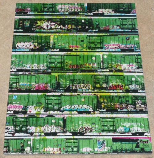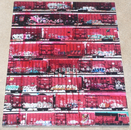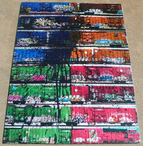 Medium: Gel Transfer and spraypaint on 1" Birch