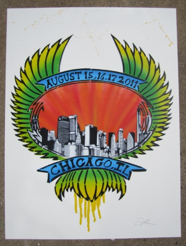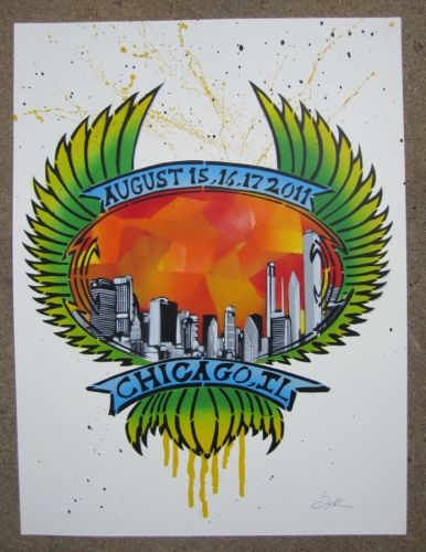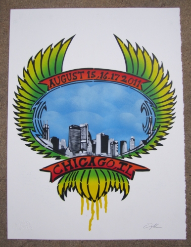 Note: 4 hand cut stencils and spraypaint. Each print in the edition is uniqiue. Available at Mock Show in Chicago on August 16th. Remaining prints will be available on IansPrints.com soon after. Prints come signed, numbered, embossed and with a hand made Certificate of Authenticity.